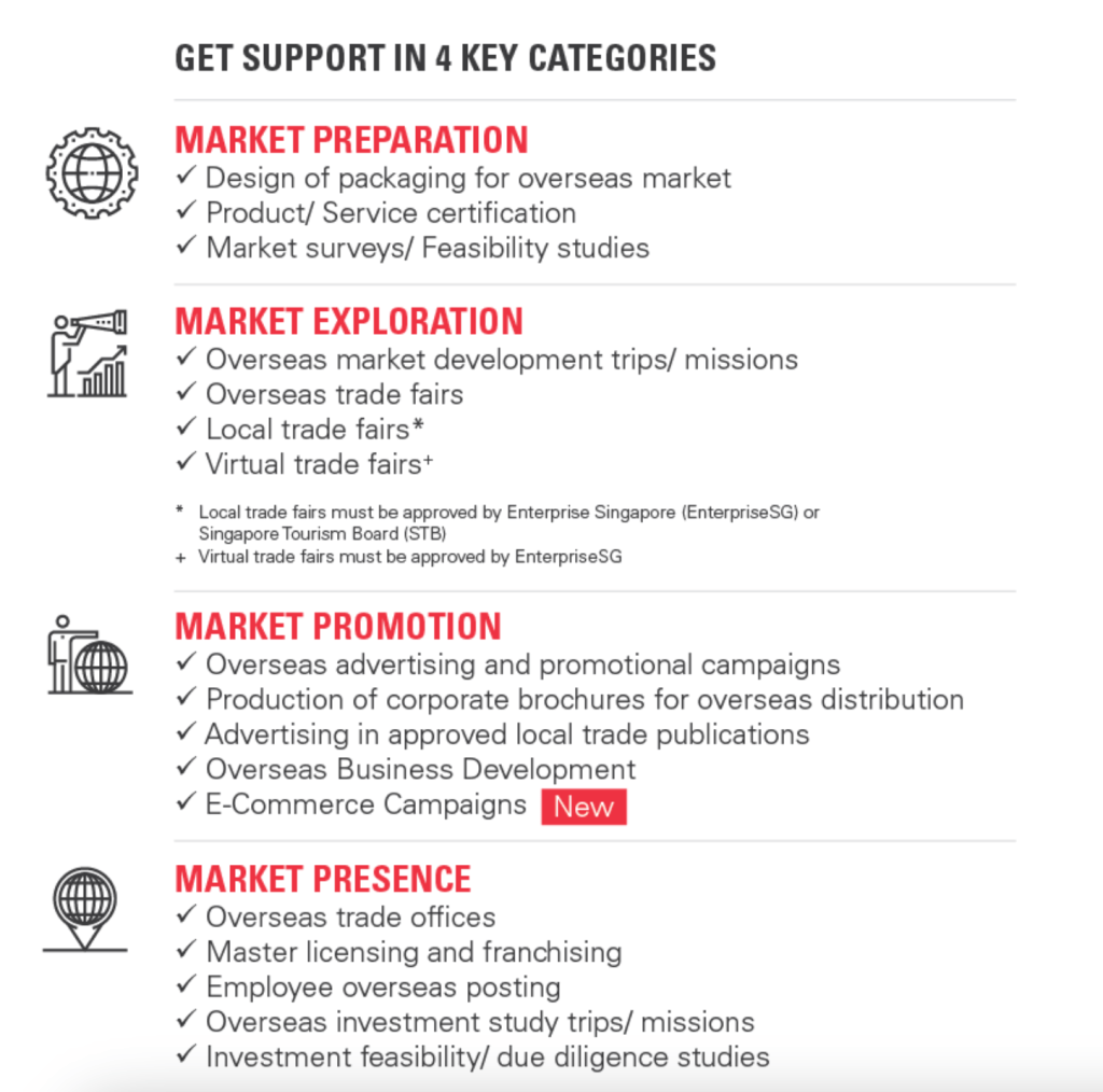 - Overseas market promotion (capped at S$20,000)